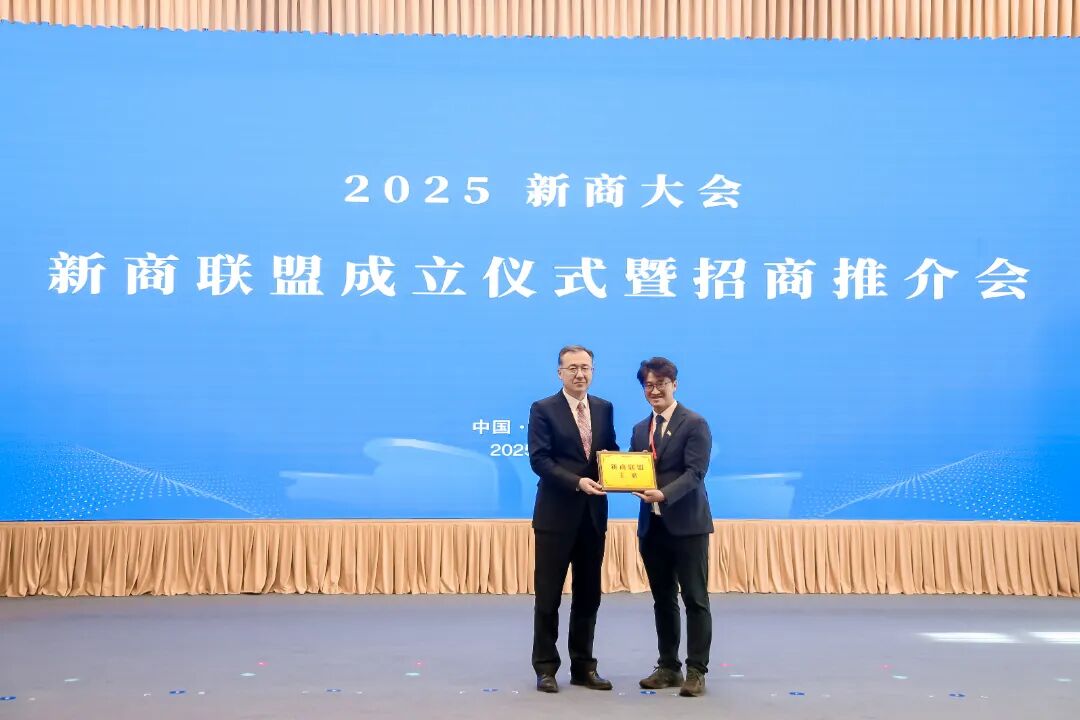 会上,新商联盟正式揭牌成立,上海市新疆商会名誉会长杨剑当选新商联盟主席,上海市新疆商会会长韩宇泽当选新商联盟常务副主席。